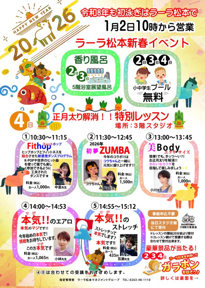 令和8年も初泳ぎはラーラ松本で!!