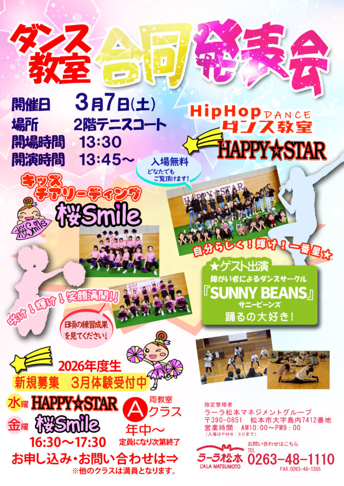 キッズHipHopダンス・キッズチアリーディングの子供達が1年間頑張った成果を見てあげてください!!