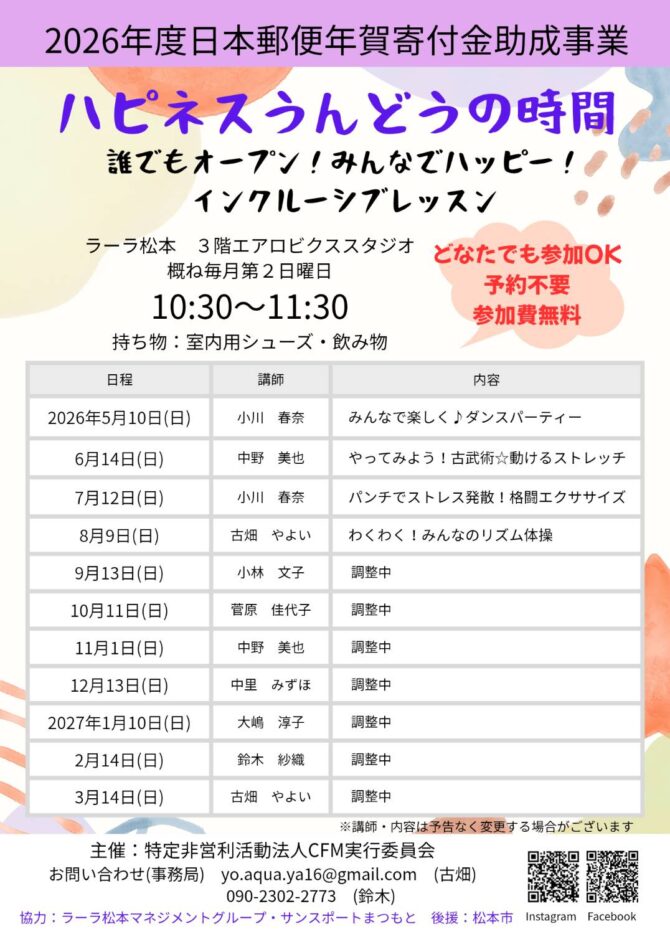 問い合わせ先:ラーラ松本 0263-48-1110